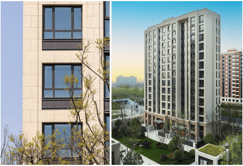此次项目外立面质感很出格,设想感超前、工艺精彩,室内墙面及转角处私宅级交付尺度,